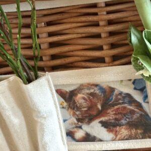 Katten horen in een mand. Mensen niet. Toch? Of niet? Ik stap het huisje van Julia binnen. Wat jaren geleden was ik er voor haar moeders uitvaart. Wat ik toen voelde, voel ik weer: Julia’s grenzeloze liefde voor haar katten. Zo staan overal mandjes, voor als ze even niet op schoot liggen. Op de tafel staat, net als toen, thee met appeltaart. In mandjes hebben katten hun draai gevonden zoals alleen katten dat kunnen. We praten over een uitvaart. Maar nu die van Julia. Ze is ziek en weet dat het niet lang meer zal duren. Julia valt met de deur in huis. Ze wil ook in een mandje liggen. En rondom zo’n band waar je bloemen in steekt, zegt ze. Meteen borrelen ideeën in me op. Creatief durven denken levert vaak iets bijzonders op, vind ik. En Julia verdient iets bijzonders. Een paar weken later bezoek ik haar in het hospice, de bloemenband in m’n tas. Wat ze niet weet: de band is speciaal voor haar gemaakt. Ik vroeg de maakster er katten op af te beelden. Misschien is het nog leuker met Julia’s katten erop, stelde ze voor. Ja! Met wat zoeken kon ik een paar foto’s achterhalen. Julia houdt de band in haar handen. Ze is diep ontroerd. Een spektakelstuk…, brengt ze uit. Wat een mooie gedachte dat m’n katten mij straks gaan vergezellen op m’n laatste reis. De dag van het afscheid. Julia ligt in de aula, in haar mandje. Mensen steken bloemen in de band. Het lijkt alsof haar katten rondom haar waken. De liefde die Julia heeft gegeven krijgt ze van ze terug en neemt ze mee op haar reis.